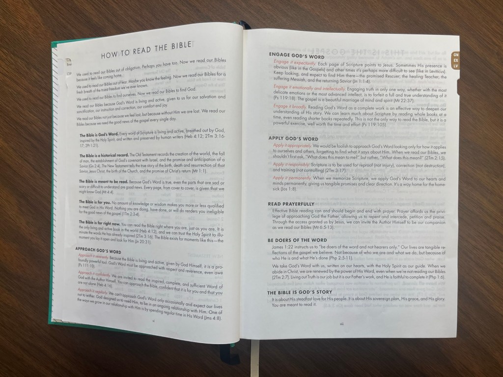 This is one of my favorite additions to this Bible. It’s a genre guide that explains the types of books in the Bible and their purpose. Each book is colored to match it’s genre.