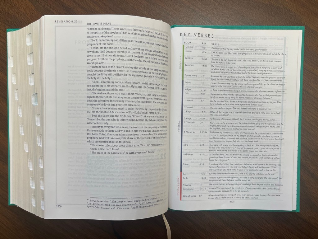 In the back, there are key verses that summarize the most important things in each book. It’s like having a highlight reel.
